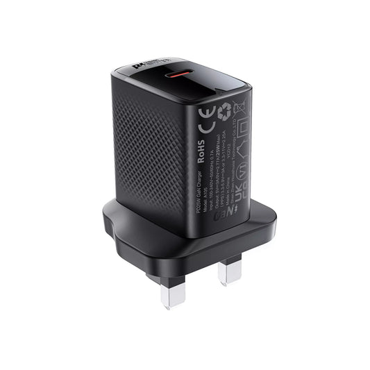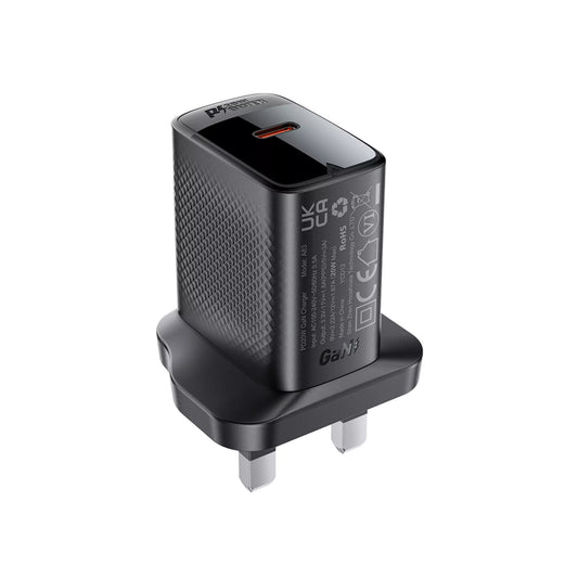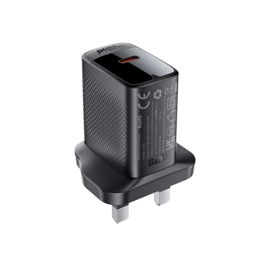 Acefast - 25W GaN USB-C Power Delivery 3-Pin UK Charging Plug - Black