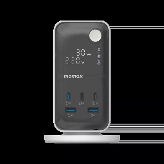 MOMAX - 1-Charge Work Flow - 6-Outlet GaN Power Tower 35W Extension Plug Socket Power Strip - 3x USB-C & 2x USB - White