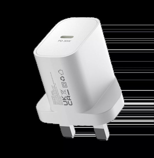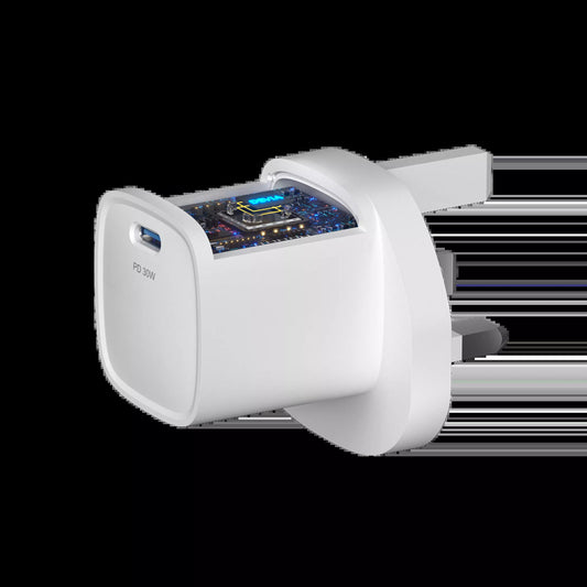 Devia - 30W Mini GaN USB-C Power Delivery 3-Pin UK Charging Plug - White
