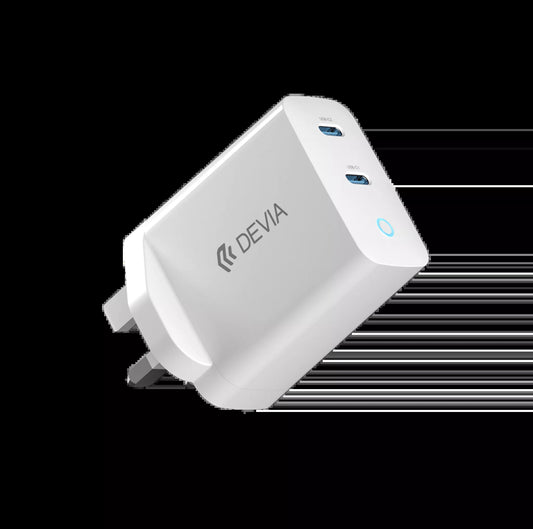 Devia - 45W GaN Dual USB-C Power Delivery 3-Pin UK Charging Plug - White