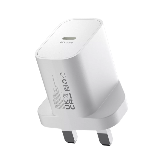 Devia - 30W Mini GaN USB-C Power Delivery 3-Pin UK Charging Plug - White