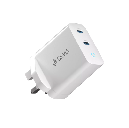Devia - 45W GaN Dual USB-C Power Delivery 3-Pin UK Charging Plug - White