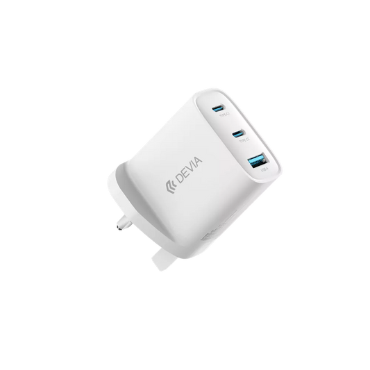 Devia - 65W GaN USB-C PD & QC4.0 3-Pin UK Mini Charging Plug - White