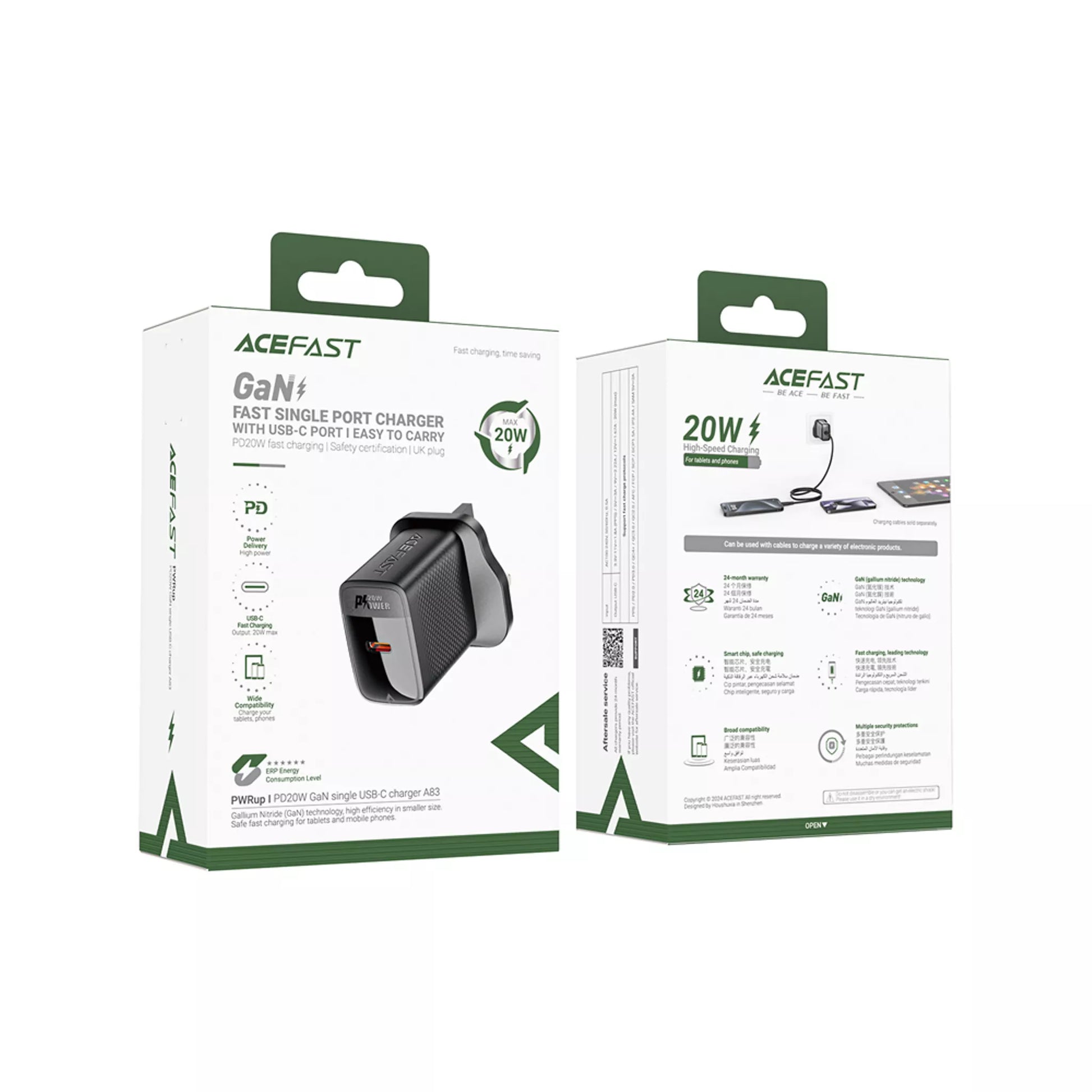 The Acefast 20W GaN USB-C Power Delivery 3-Pin UK Charging Plug is a high-performance, efficient, and safe charging solution. Its combination of advanced GaN technology, multiple safety features, and sleek design makes it an essential accessory for keeping your devices powered up and ready to go. Stay connected and charged with the reliable Acefast charging plug.