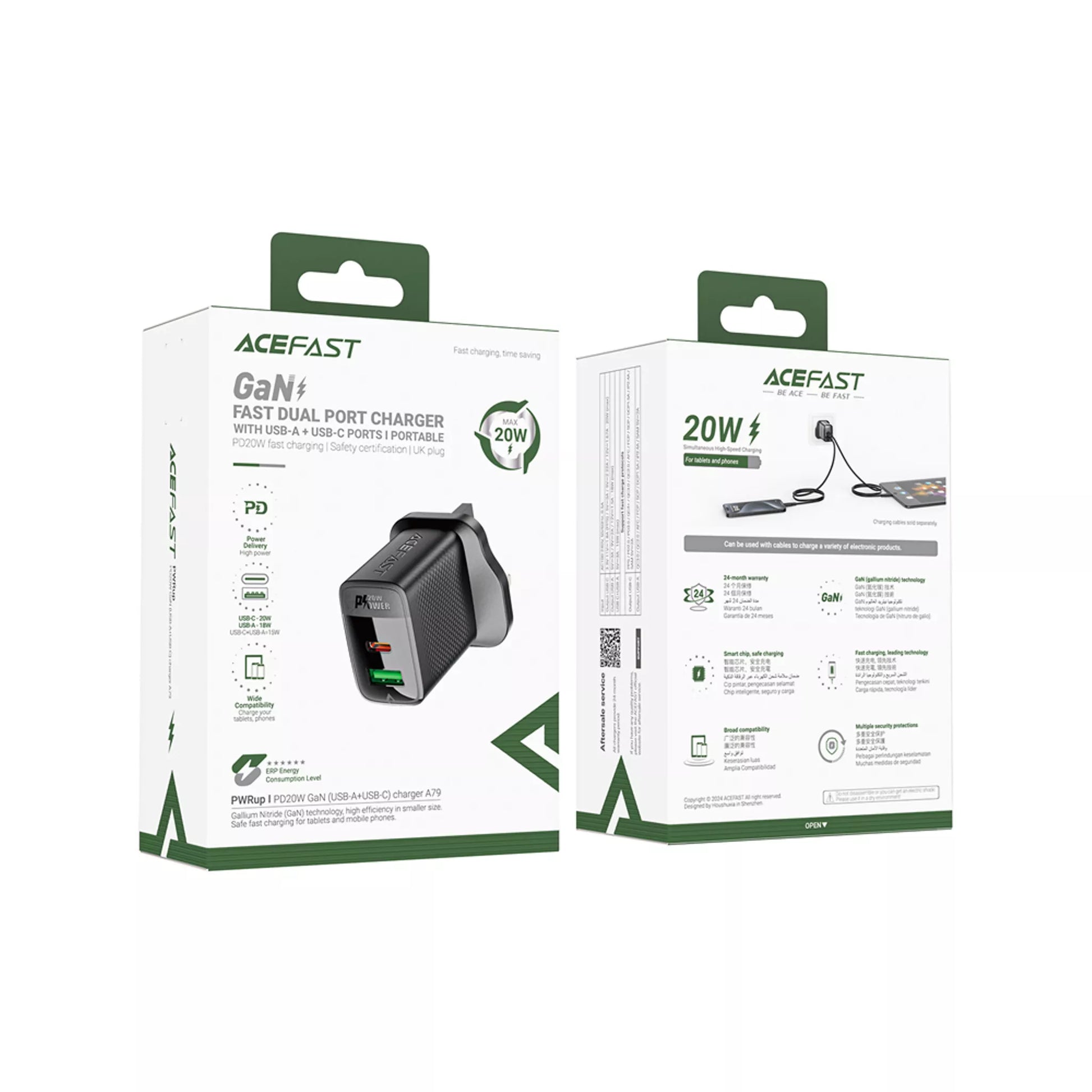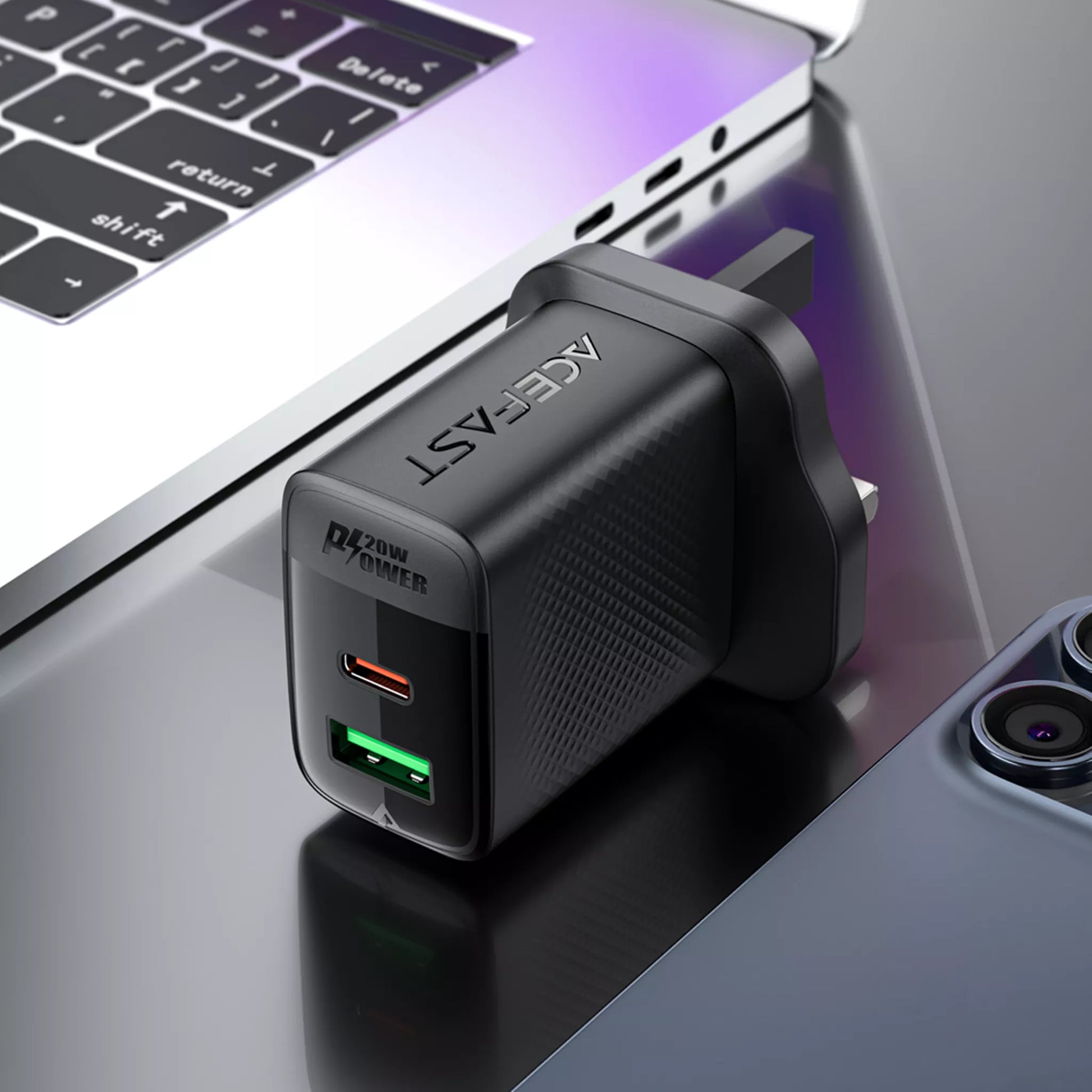 The Acefast 20W GaN USB-C Power Delivery & USB Qualcomm 3-Pin UK Charging Plug is a high-performance, efficient, and safe charging solution. Its combination of advanced GaN technology, multiple safety features, and sleek design makes it an essential accessory for keeping your devices powered up and ready to go. Stay connected and charged with the reliable Acefast charging plug.