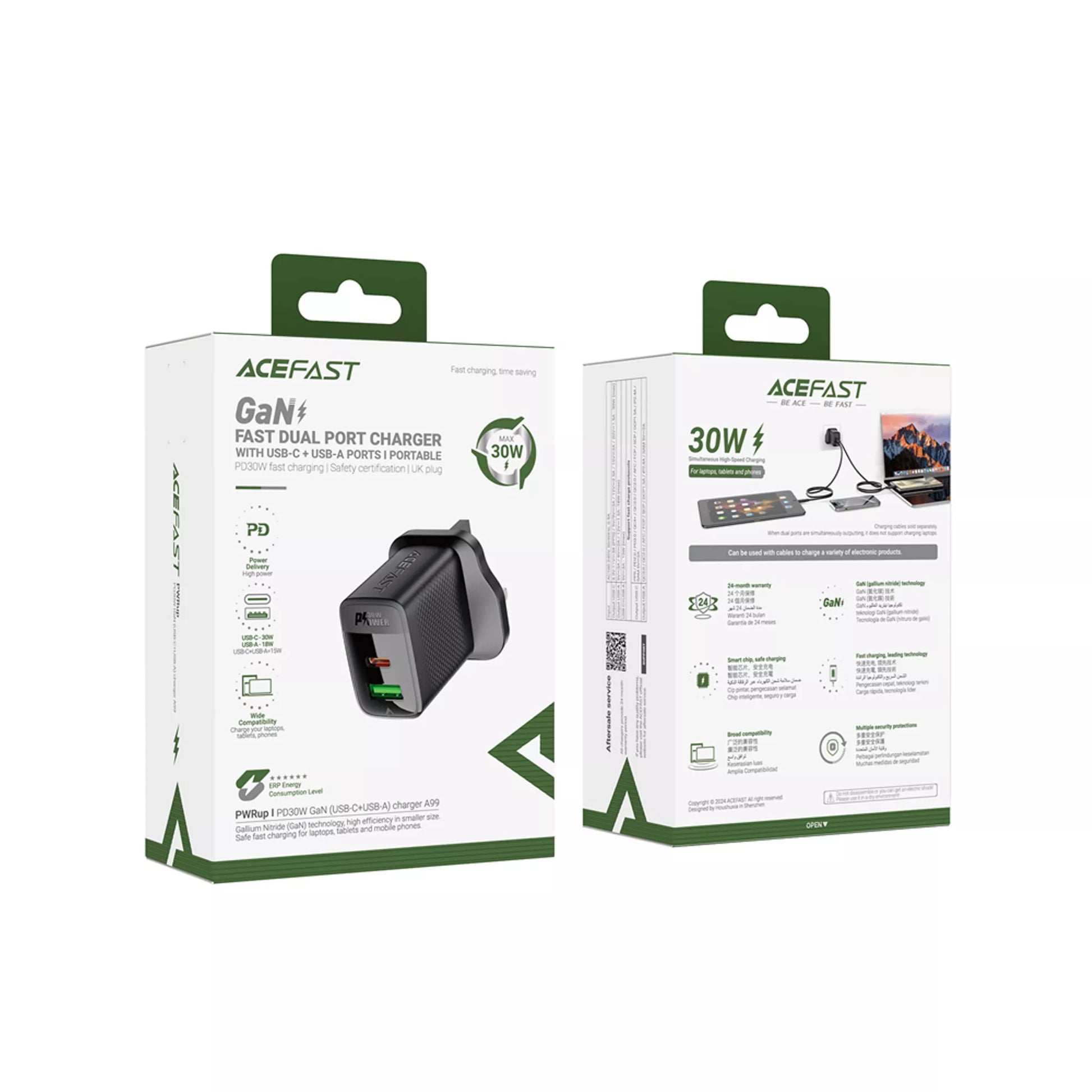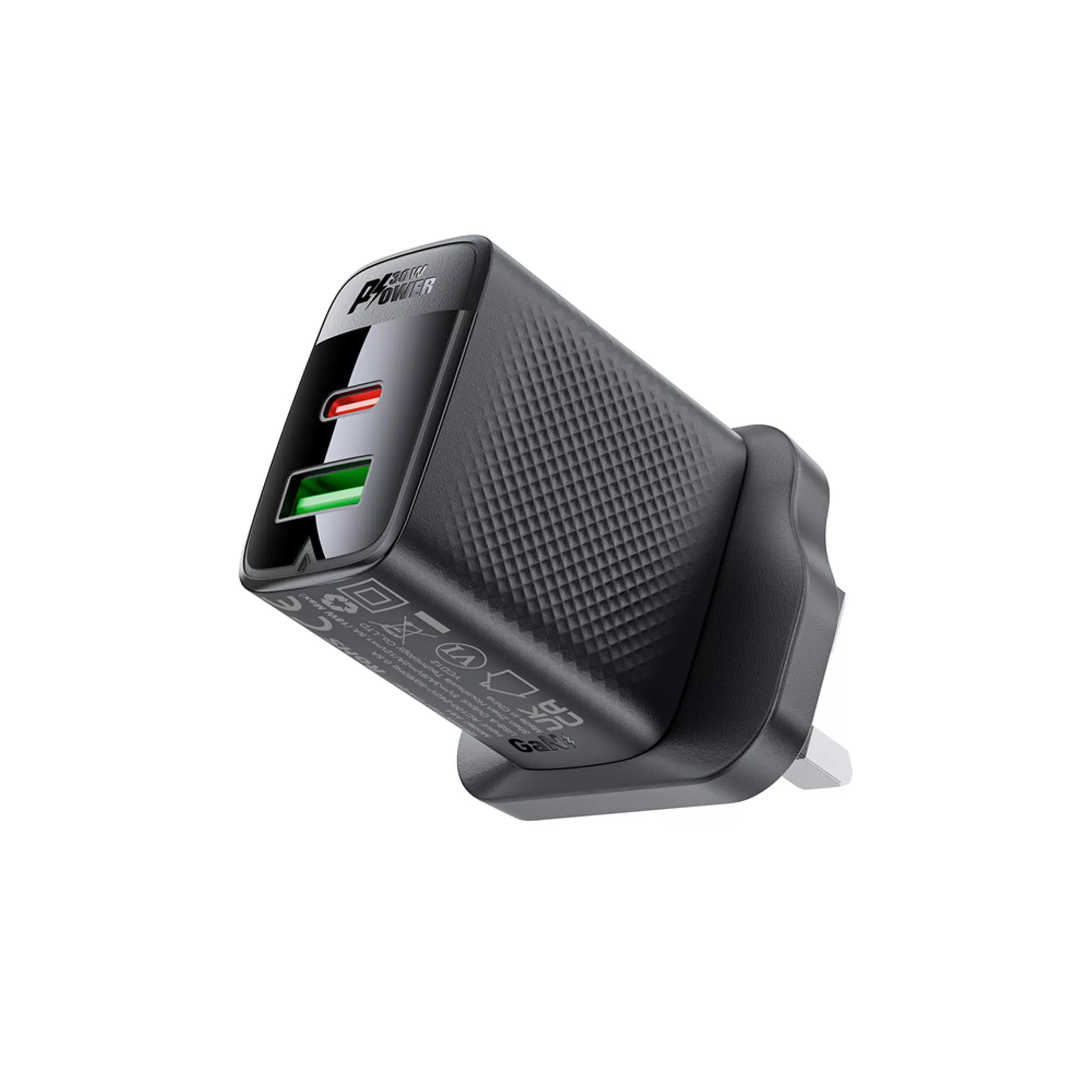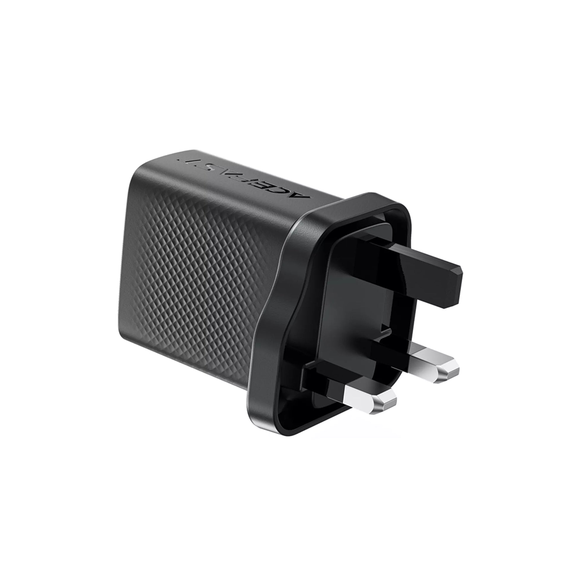 Introducing the Acefast 30W GaN USB-C Power Delivery & USB Qualcomm 3-Pin UK Charging Plug, a cutting-edge solution for your charging needs. This compact and efficient charging plug is designed with advanced Gallium Nitride (GaN) technology, offering a smaller size, lower temperature, and higher efficiency. The sleek black finish and unique pineapple pattern style add a touch of sophistication to your tech accessories.