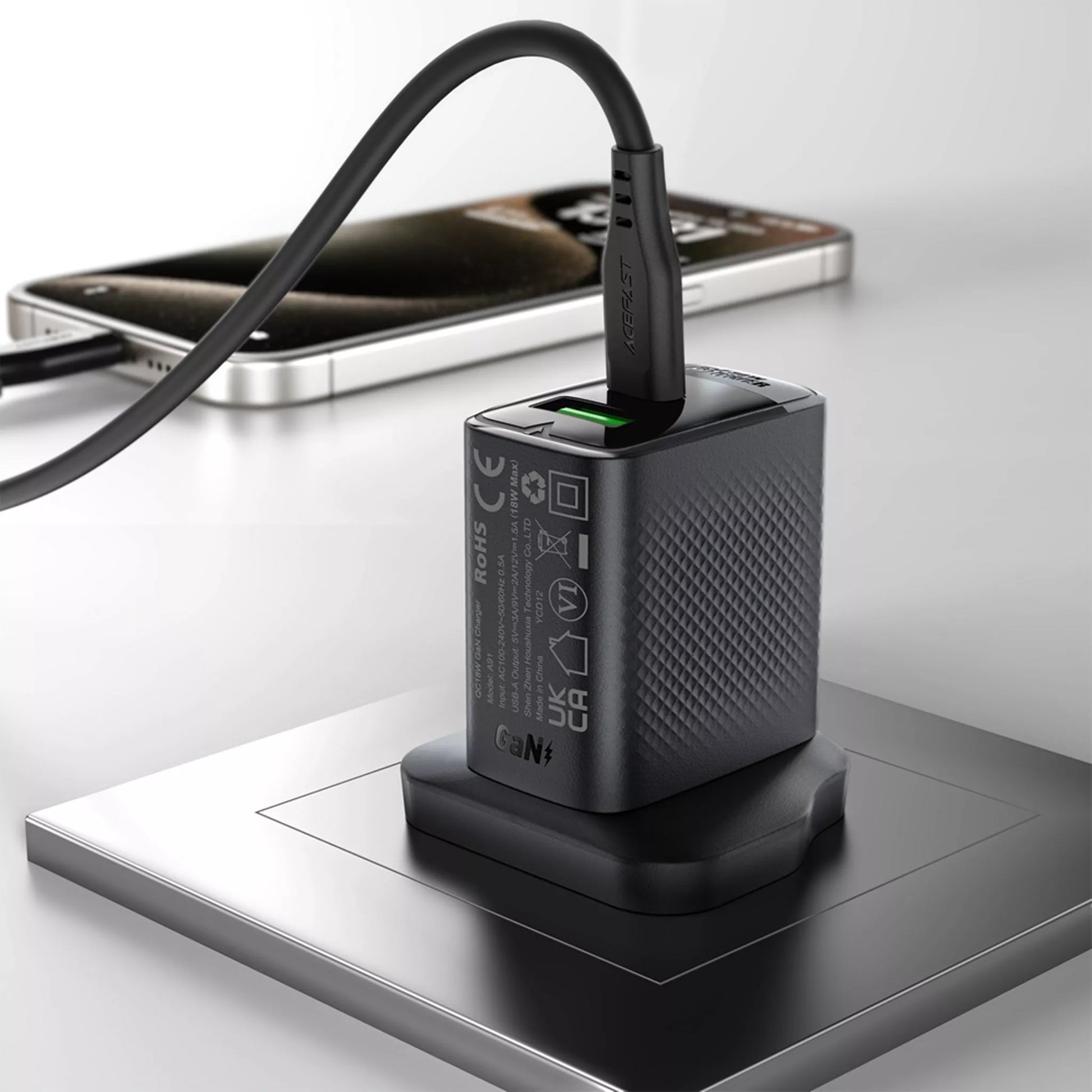 The Acefast charging plug is certified with UKCA and CB standards, ensuring compliance with safety regulations and quality assurance. This certification guarantees that the product meets high safety and performance standards, making it a reliable choice for your charging needs.