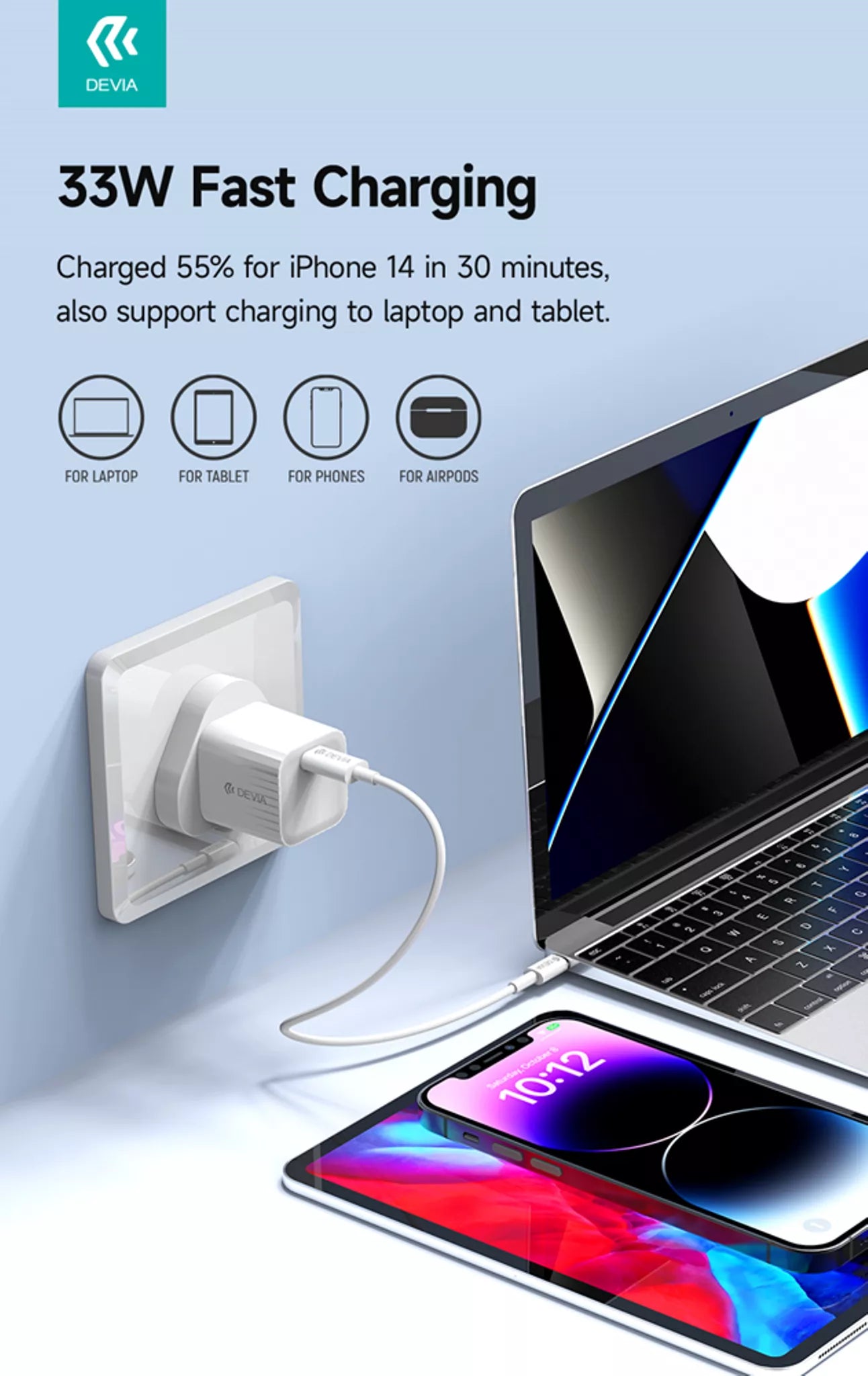 GUARANTEED 65% CHARGE FOR IPHONE/IPAD (DEPENDENT IF CABLE IS POWER DELIVERY COMPATIBLE)