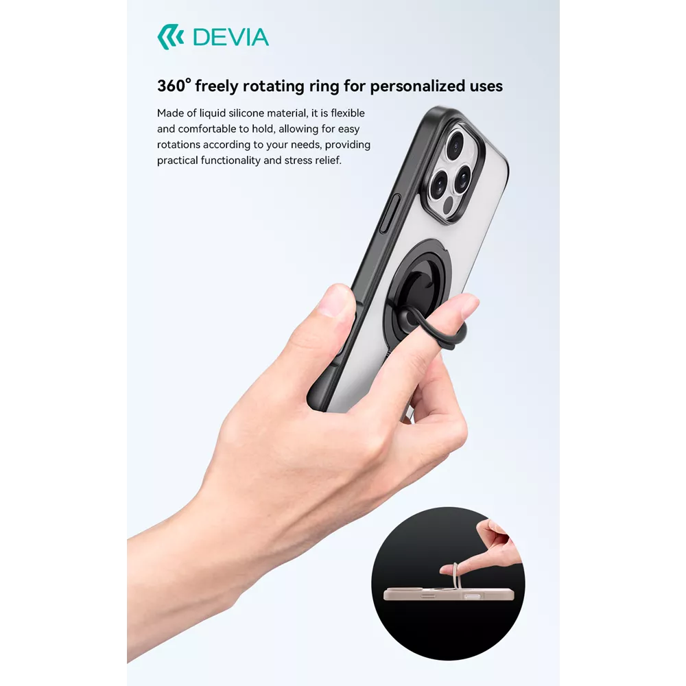 The built-in silicone ring holder allows you to securely hold your phone on the go. Whether you’re texting, taking photos, or using apps, the ring provides stability and comfort, ensuring your device stays firmly in your hand. This feature is particularly useful for preventing accidental drops and enhancing your grip, making it easier to handle your phone during various activities.