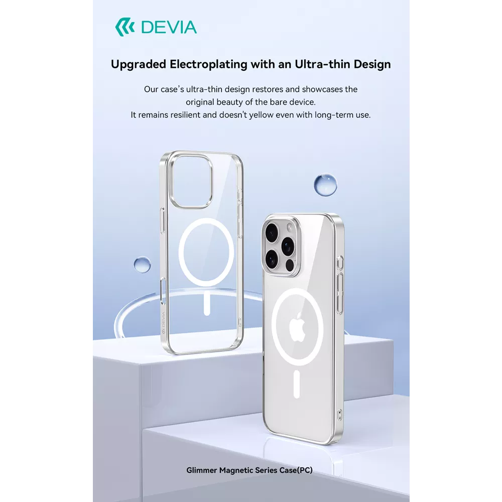 Experience unparalleled protection with the Devia Glimmer MagSafe Case, crafted from high-quality PC (polycarbonate) and enhanced with electro-plating, this case offers a sleek, stylish, and durable design that perfectly complements your device. The combination of these materials not only provides a premium look but also ensures long-lasting protection against everyday wear and tear.