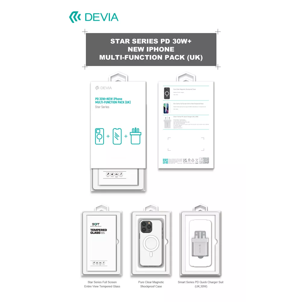The Devia MagSafe Starter Pack is an all-in-one accessory bundle tailored for your device. It combines essential items to enhance your iPhone experience, providing both protection and convenience.