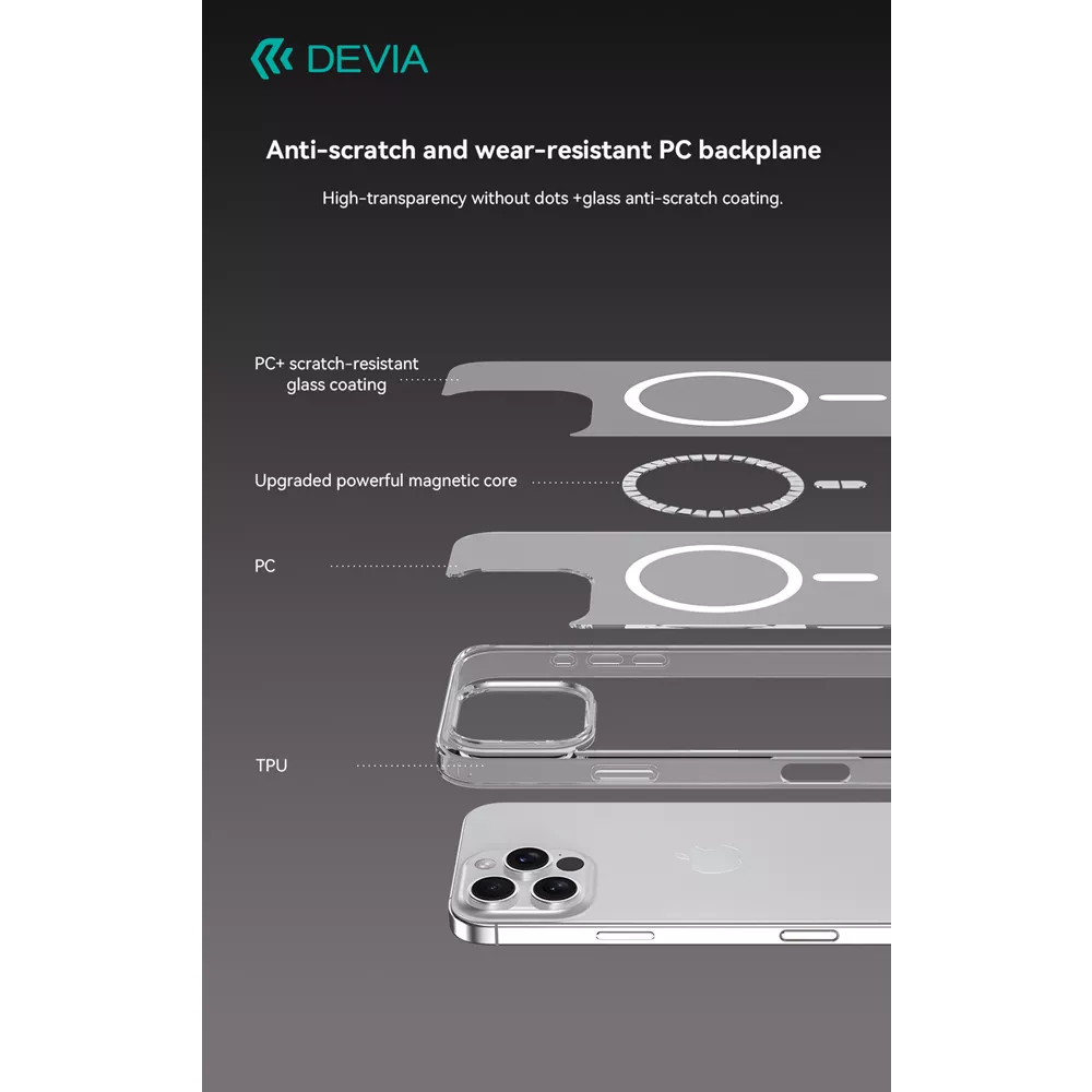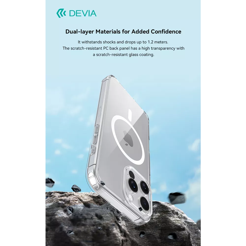 Experience the perfect blend of elegance and protection with the Devia Pure MagSafe Case. This ultra-thin and lightweight case is designed to be slim and grip-friendly, making it ideal for everyday use. Constructed with a slim and hybrid structure, this case offers robust protection against bumps and scratches. The raised camera frame ensures longer-lasting clarity and a rigid back provides additional durability.