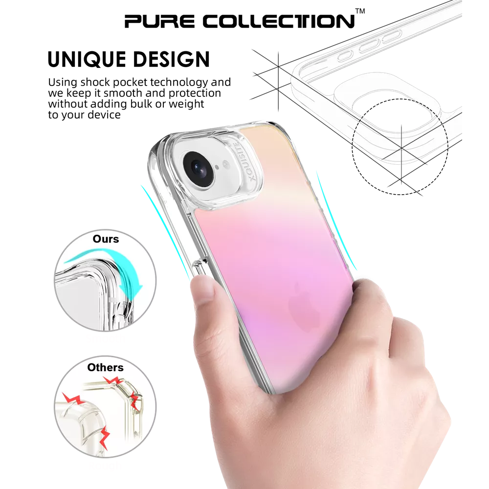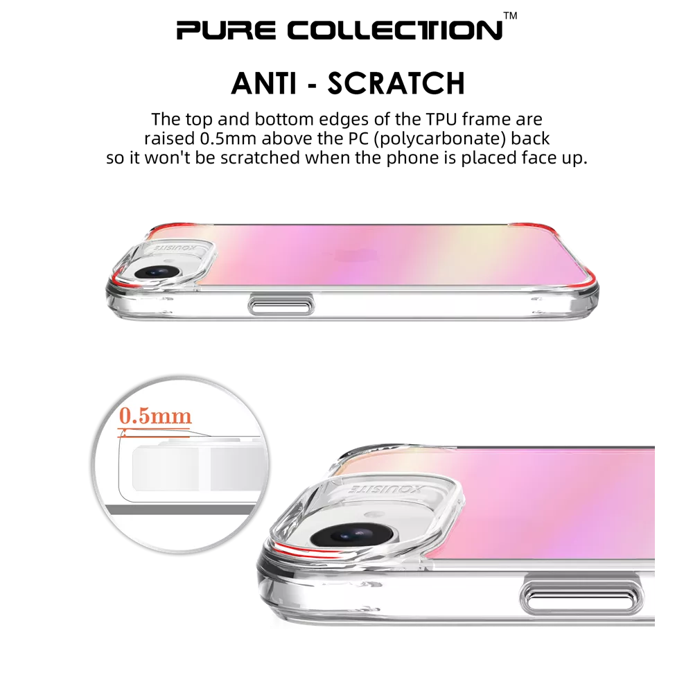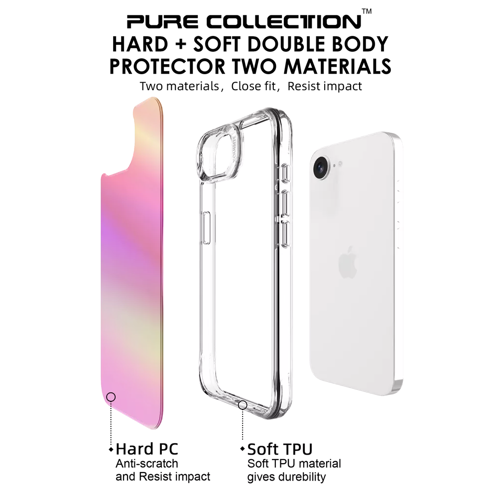 The hard-shell back provides solid protection, while the soft, pliable edges absorb impact and shock. This combination ensures comprehensive protection for your device. It secures seamlessly around your device, offering the securest protection without compromising style. Ideal for those who prefer to protect their device without concealing much of the phone’s original design.