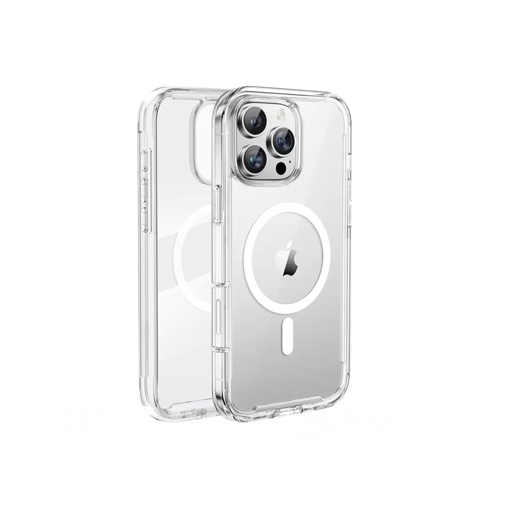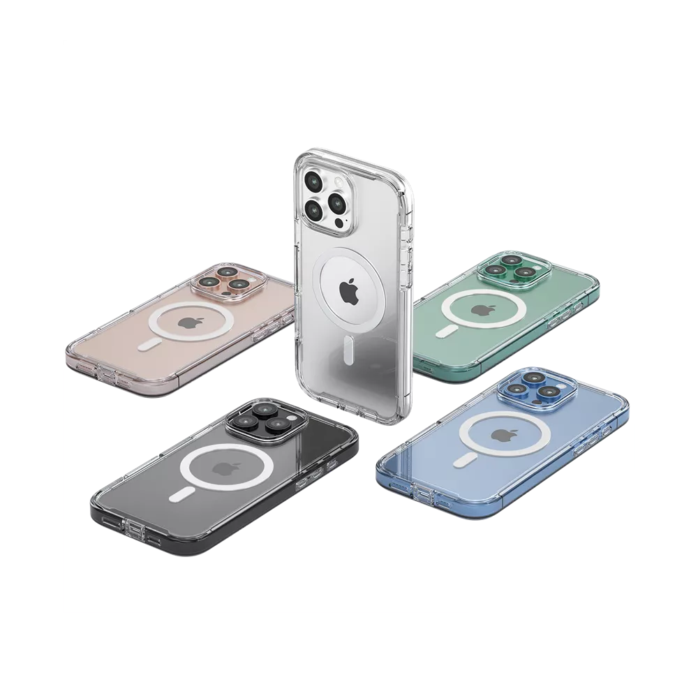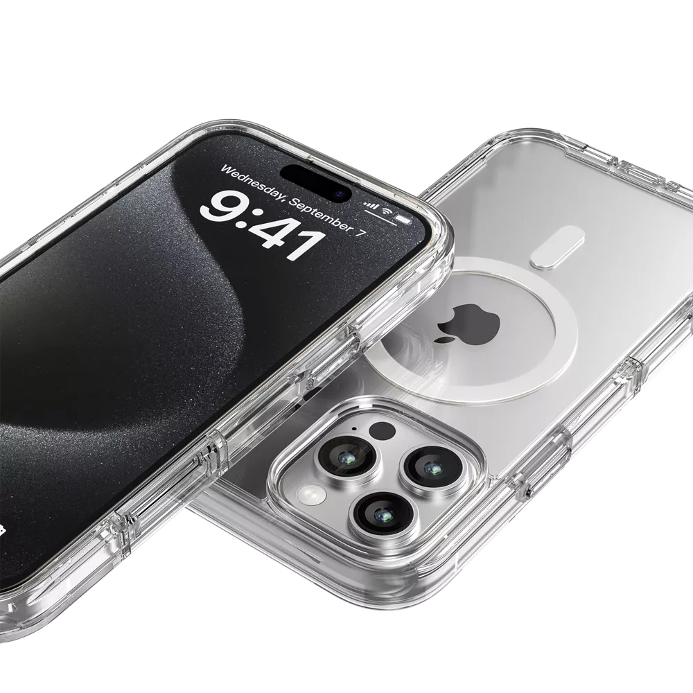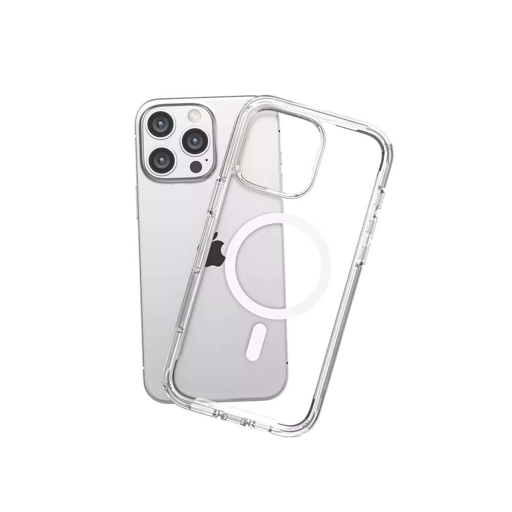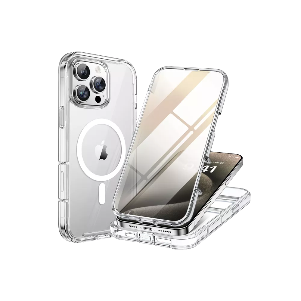 The ProMag 360 offers comprehensive full-body protection for your iPhone, effectively blocking dirt and dust. It is constructed from a flexible TPU material combined with tri-layer structures that absorb and deflect impacts, providing superior durability. The raised bezels around the camera and the screen offer additional protection against scratches and have been rigorously tested to survive drops, meeting military standards.